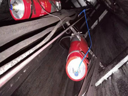 輸煤系統(tǒng)電纜橋架安裝柱狀懸掛式超細(xì)干粉滅火裝置(600g),如下圖