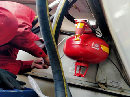 機(jī)艙電纜橋架安裝柱狀懸掛式超細(xì)干粉滅火裝置(300g),如下圖