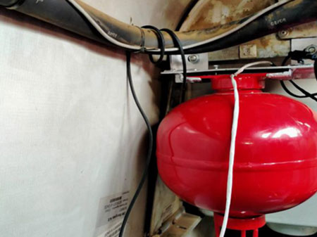 機(jī)艙二號(hào)控制柜安裝柱狀懸掛式超細(xì)干粉滅火裝置(300g),如下圖